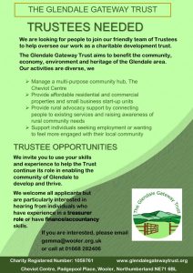 I joined the Glendale Gateway Trust in August 2021 and took over the accounts when my predecessor retired in September 2022. I have worked in finance since leaving school. I have previously lived in Dorset, Germany and the Isle of Man, before settling in Wooler in April 2021.